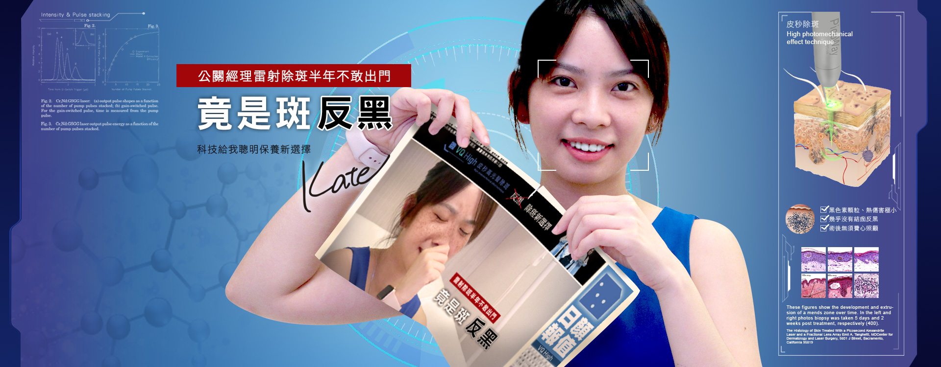 隨著科技進步,目前發現運用皮秒高光聲、高光震的特性來治療亞洲人黑色素改善效果較為顯著。皮秒脈衝時間短、熱傷害低 (一發僅需要千億分之一秒),比淨膚雷射快一千倍,輔以漸進式施打,大幅降低傳統除斑反黑機率。