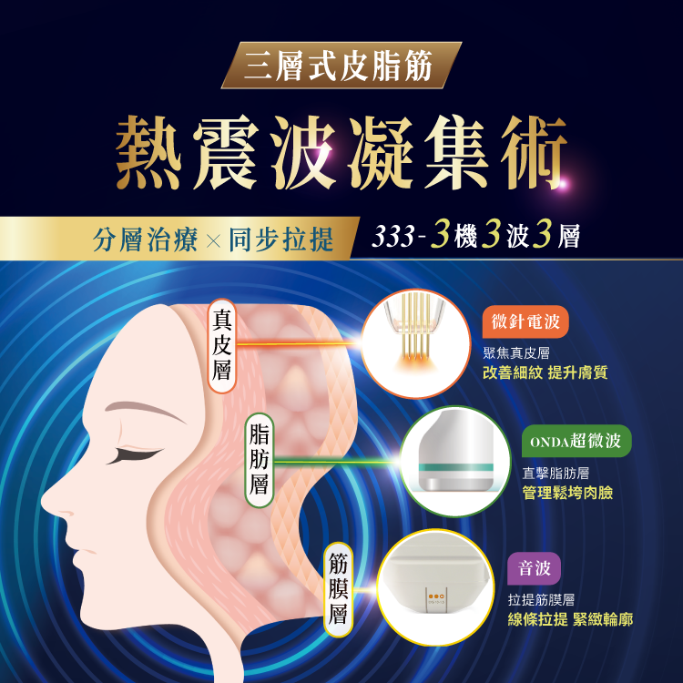 | 適合對象:對於肌膚有全臉拉提緊緻、膚質提升,或有改善眼周細紋、脖(頸)紋、嘴角紋、法令紋、木偶紋等需求者;有嘴邊肉、肉肉臉、雙下巴區域困擾者、有輪廓線鬆弛及肉肉臉困擾者及皮膚老化鬆垮問題嚴重者等。 |